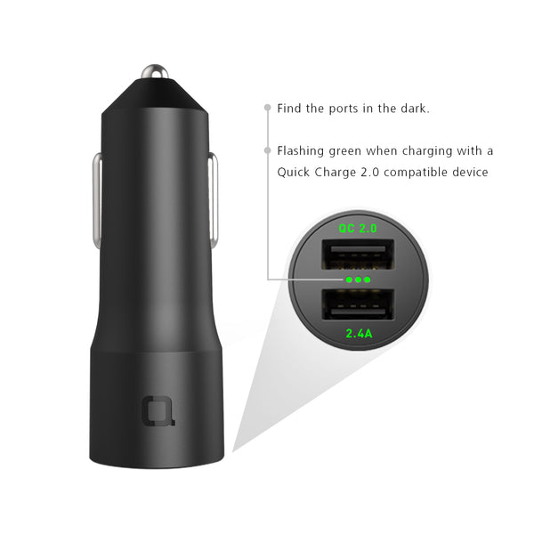 One QC 2.0 port and one 5V 2.4A port with smart device detection guarantee blazing fast charging for any mobile device (For optimal use, please charge with an OEM cable or nonda ZUS® Cable).